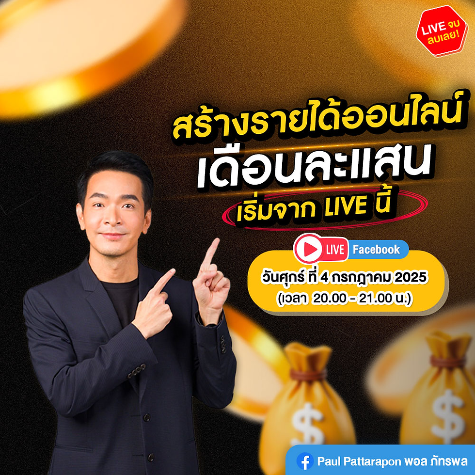“ สร้างรายได้ออนไลน์ เดือนละแสน! เริ่มจาก LIVE นี้! “ 🚀 LIVE วันศุกร์ที่ 4 กรกฎาคม 2025 เวลา: 20:00 - 21:00 🔴 YouTube: Paul Pattarapon 🔵 Facebook: Paul Pattarapon พอล ภัทรพล แล้วเจอกันนะครับ 🎉🙂